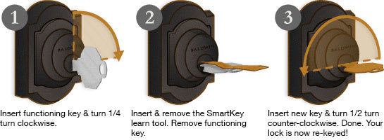 A schlage re keying kit will re key a baldwin lockset in minutes to secure a home or office after a change of residency or employees.